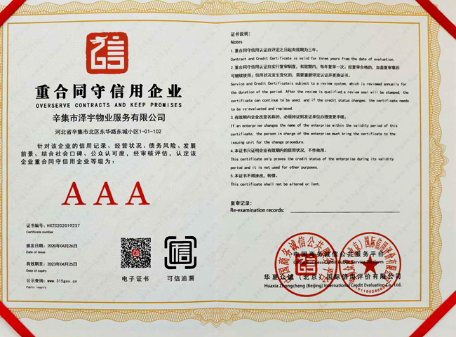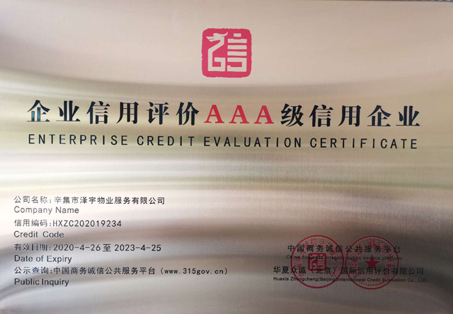 企業(yè)信用評(píng)價(jià)AAA級(jí)信用企業(yè)